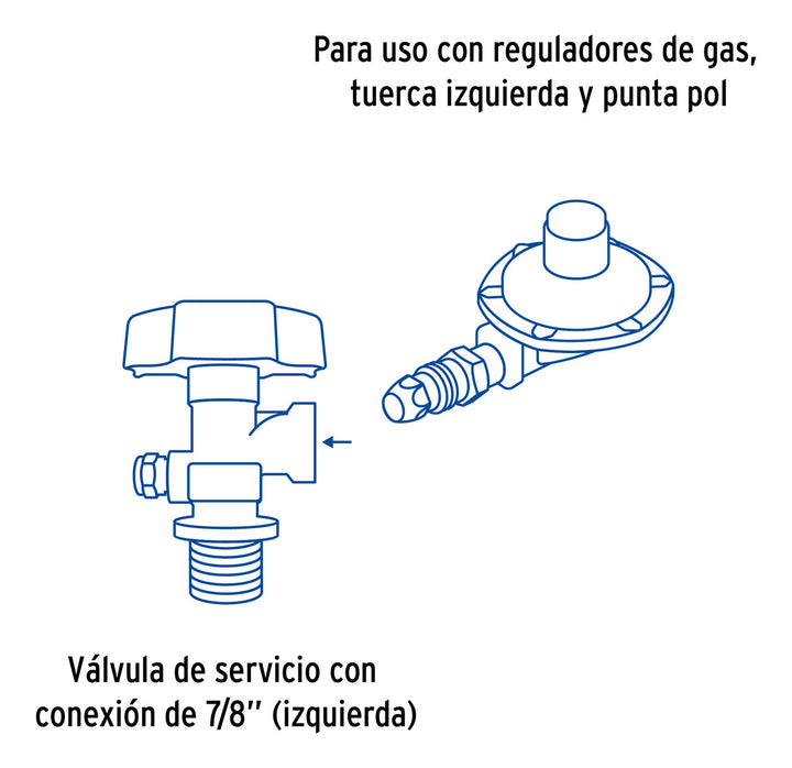 reguladores para gas LP, tuerca izquierda y punta pol, marca Foset®, no incluidos