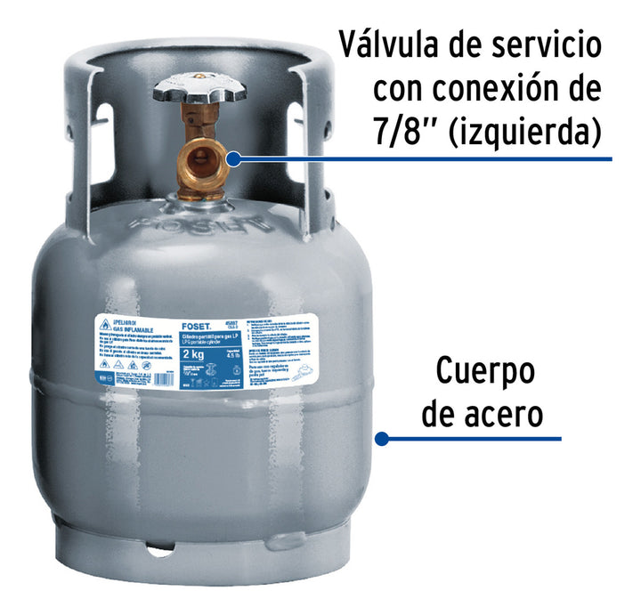 Cilindro Portátil Para Gas Lp, 2kg (4.5lb) Foset